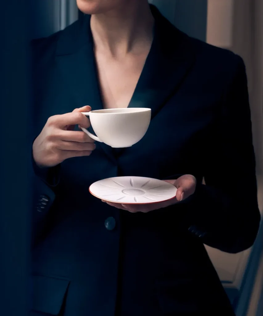 The second series, Light of Time, draws inspiration from the cellars where Louis XIII’s eaux-de-vie rest and evolve. JL Coquet shaped the porcelain with faceted surfaces that reflect and refract light, mirroring the brilliance of the iconic crystal decanter. Each piece is finished with hand painted copper accents, a subtle nod to the warm amber glow of cognac itself.